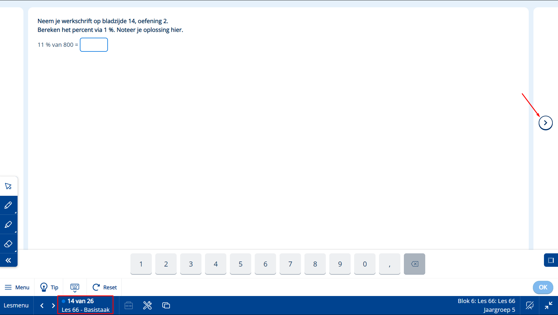 - Gebruik de pijltjes onderin om te navigeren naar de oefening en/of de basistaak.