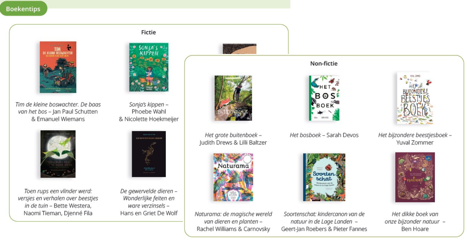 Dat zijn fictie- en non-fictieboeken die inhoudelijk aansluiten bij het thema en die je een plaats kunt geven in je klas of leeshoek. Zo bied je leerlingen extra kansen om zich verder te verdiepen in het thema, op hun eigen tempo en vanuit hun eigen interesse.