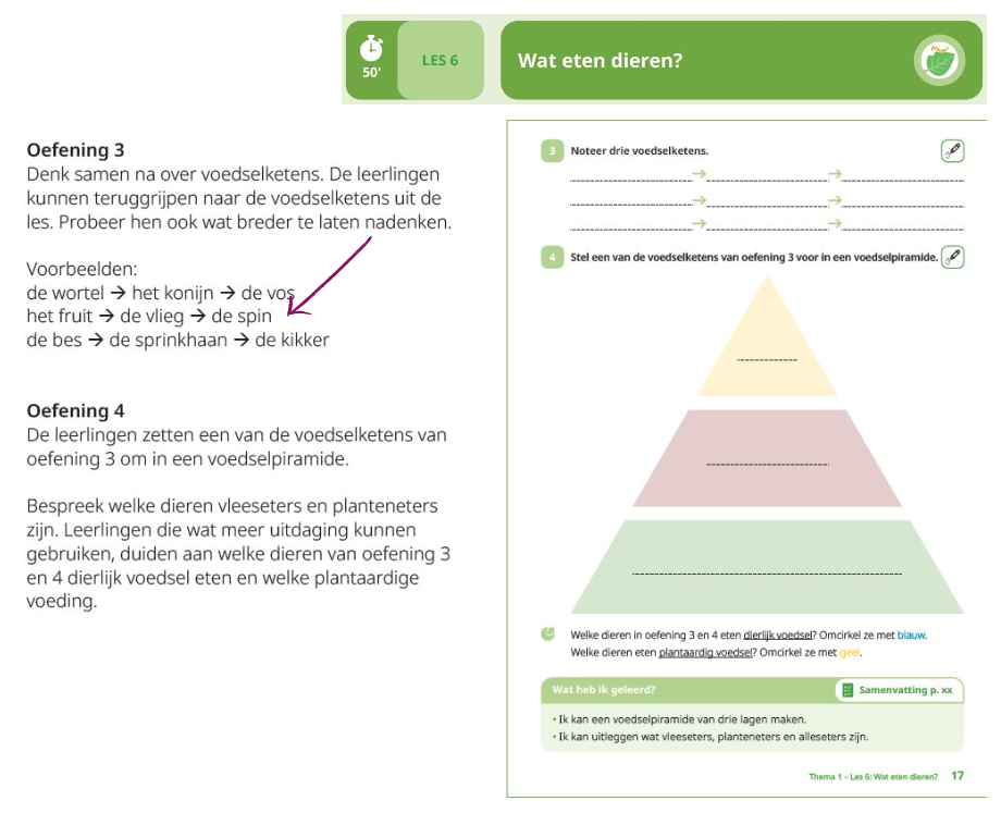 Je merkt in dit thema bijvoorbeeld dat woordenschat en kennis over planten, dieren en hun leefomgeving in beide methodes aan bod komen.