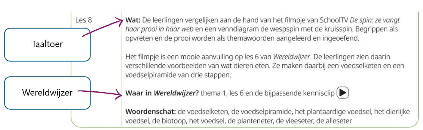Omgekeerd helpt de kennis uit Wereldwijzer leerlingen ook om de taalactiviteit sterker te maken.