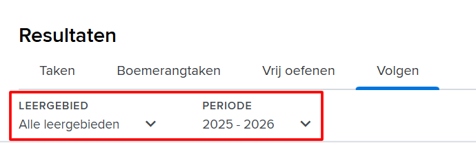 4 Gebruik de filter om te filteren op leergebied en periode.