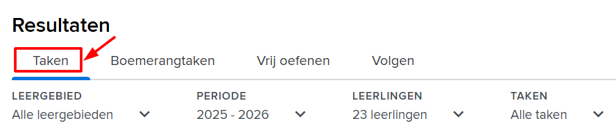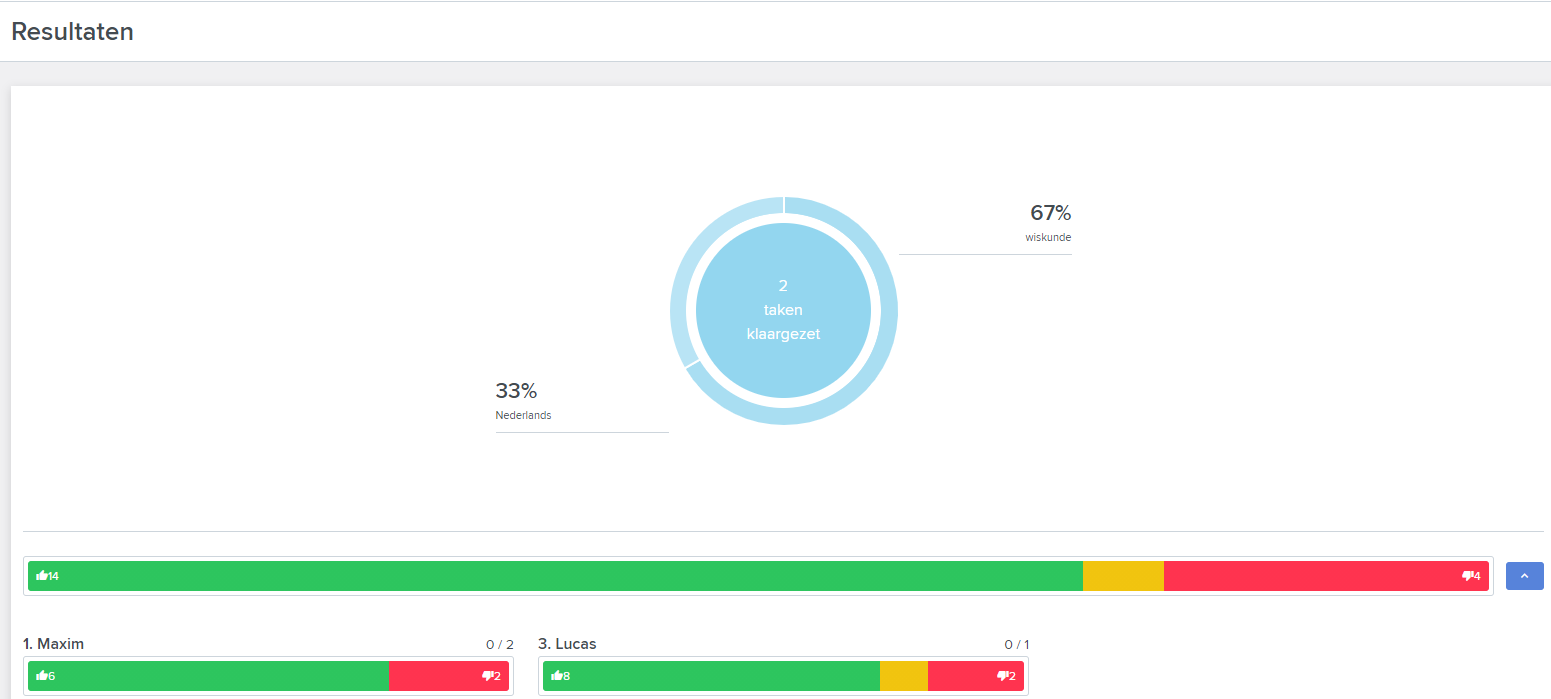 Via Bingelresultaten kom je te weten hoeveel taken er zijn gemaakt, hoe succesvol dit liep en welke leergebieden hierbij aan bod kwamen.