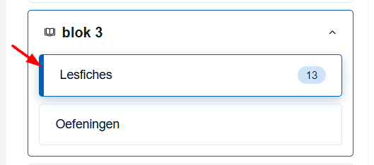 5 Open het gewenste hoofdstuk (blok, thema, sprong, ...) en kies "Lesfiches".