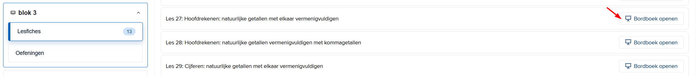 6 Open het bordboek dat hoort bij de lesfiche via de knop "Bordboek openen".
