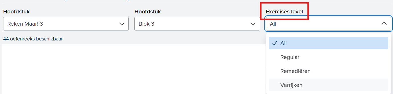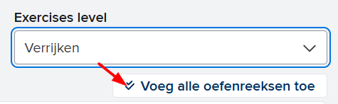 Klik op de snelkoppeling “Voeg alle oefenreeksen toe” om in één klik alles toe te voegen (handig in combinatie met de filter erboven).