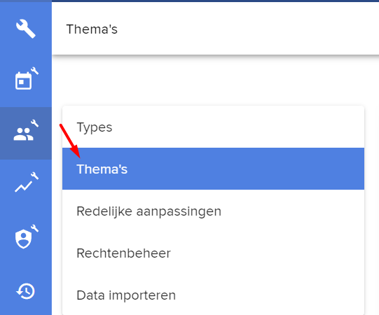 In dit venster kun je als beheerder de verschillende thema’s aanmaken en aanpassen.