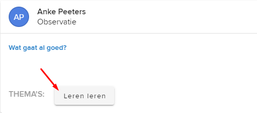 Een thema is een inhoudelijke tag die je aan een notitie hangt. Dankzij deze tags worden de notities met elkaar verbonden. Bv. thema = leren leren. Alle notities met bv. type “observatie”, “leerlinggesprek”, “oudergesprek” en “MDO” worden getagd met het thema “leren leren”. Zo kun je gemakkelijk alles rond leren leren terugvinden van een leerling, klas of school.