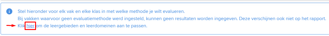 De vakken uit Bingel Planner zijn dezelfde voor Bingel Evaluatie en worden dus hergebruikt. Als je bv. Frans al gebruikt in de Planner, moet je Frans niet meer opnieuw aanmaken voor Evaluatie. Voor aanpassingen aan de vakken, klik je op de link “hier” in de infobalk.