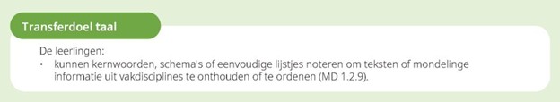 Wereldwijzer zal taaldoelen als transferdoelen opnemen. Zo werken we bijvoorbeeld aan eenzelfde leerlijn schrijven. Leerlingen krijgen hiervoor binnen Nederlands aparte instructietijd voor. We leren het hen expliciet aan, bij de zaakvakken worden deze vaardigheden vervolgens verder toegepast.