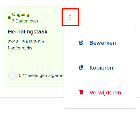 De oefenreeks wordt automatisch in een nieuwe herhalingstaak voor deze leerling opgenomen.