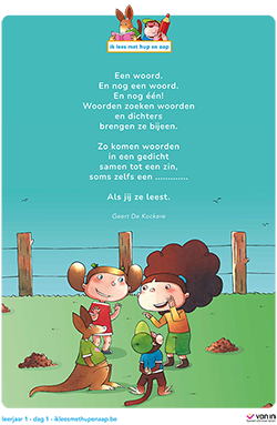 Hup sprong bijna een gat in de lucht toen hij zag hoeveel woorden jullie instuurden. En Aap? Die klapte zo hard in zijn handen dat de letters ervan begonnen te dansen. Want dag 1 van de poëzieweek, dat vier je niet stilletjes. Dat vier je met woorden die samenkomen. Met woorden die elkaar zoeken. En plots… feest worden. Het juiste woord was dan ook feest. Natuurlijk! Poëzie begint met vieren.