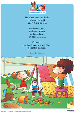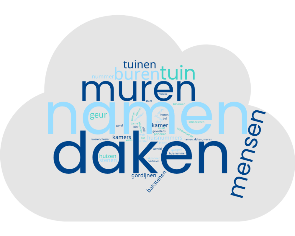 Maar jullie voelden ook heel goed aan waar het gedicht écht over gaat. Want achter die muren wonen mensen. Kinderen, families, buren. En elk huis heeft zijn eigen naam. Dat juiste woord – namen – past prachtig in het gedicht. Want huizen mogen dan wel verschillen van kleur, vorm of grootte… ze horen allemaal bij elkaar. Net zoals mensen.