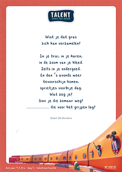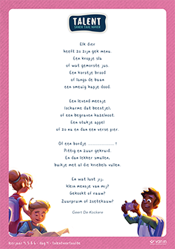 Smaakt dit naar meer? Je krijgt bovendien extra didactische suggesties om een hele week creatief aan de slag te gaan met poëzie. Die vind je terug op de sectie met de didactische suggesties.