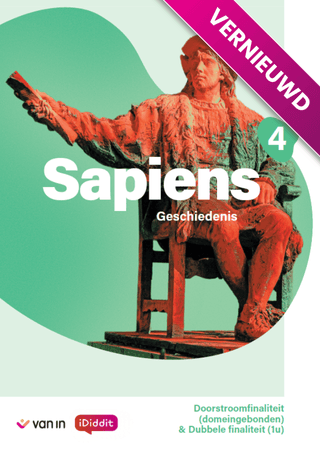 Eigentijdse methode geschiedenis voor de A-stroom, doorstroom- en dubbele finaliteit. Actief historisch denken komt op de eerste plaats bij Sapiens! Leerlingen onderzoeken (zelfstandig) uitdagende historische vragen aan de hand van het rijke bronnenmateriaal in het leer(werk)boek en op het onlineleerplatform iDiddit.