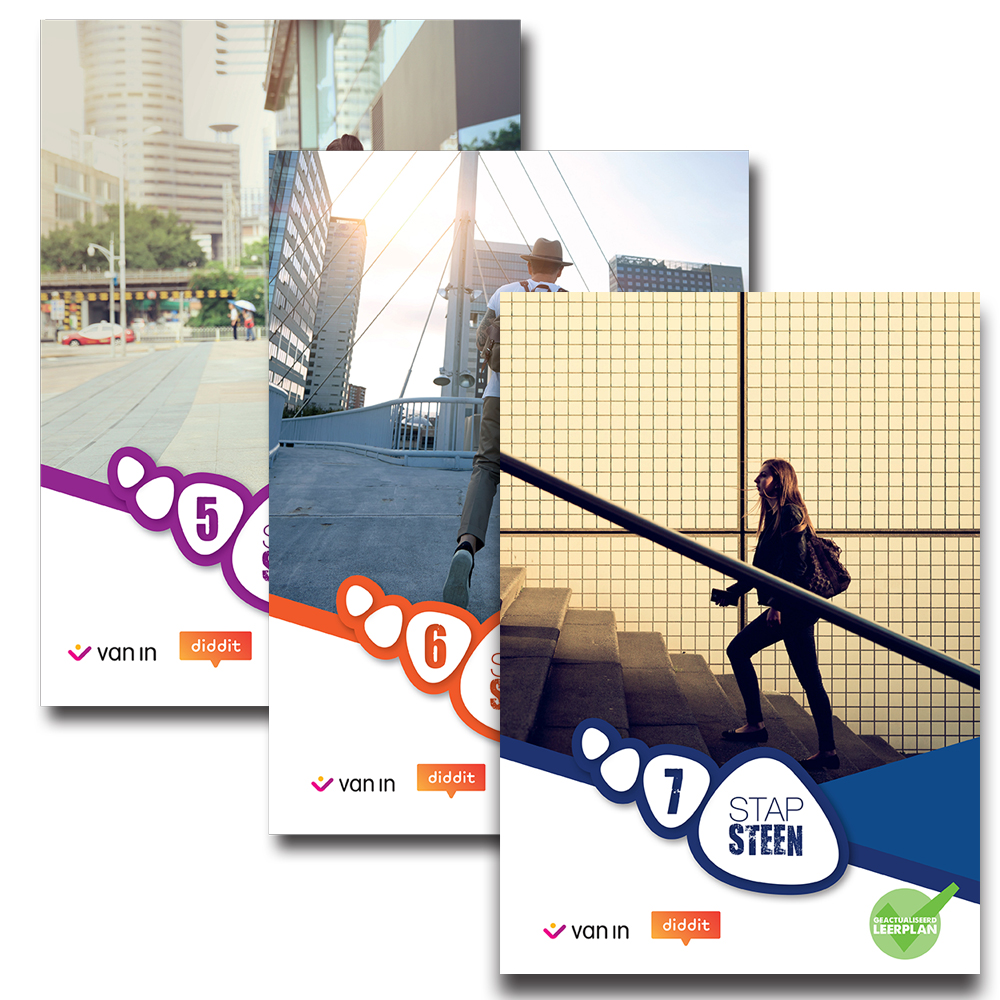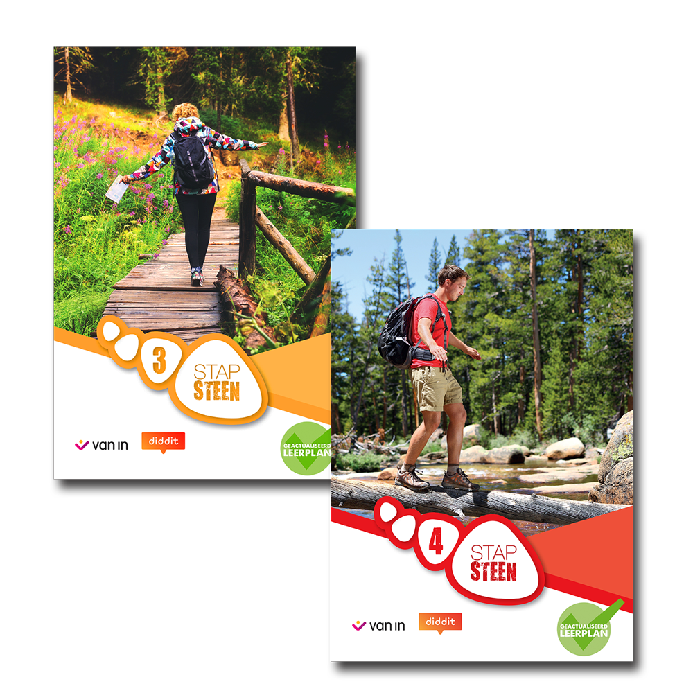 StapSteen, dat is telkens 1 leerwerkboek per jaar. Elk boek is opgebouwd volgens dezelfde structuur en doorheen de methode kunnen je leerlingen gebruikmaken van stapstenen, duidelijke kadertjes waarin je de nieuwe kennis en inzichten samen met je leerlingen vastzet, zodat ze stevig de volgende stap kunnen nemen.